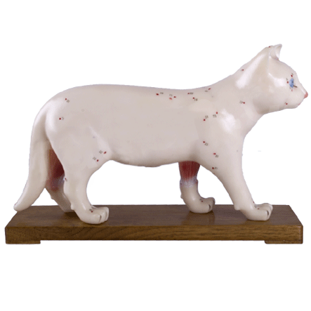 Praktická pomůcka pro akupresuru, akupunkturu a masáže. Model kočky, velikost 28 cm, číslem označené akupunkturní body, jedna půlka modelu je anatomická a má na sobě čísla akupunkturních bodů, druhá půlka je šlachosvalová.
