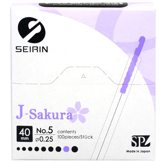 Akupunkturní jehly Seirin J-type 5 - 0,25×40 mm. Jehly se zaváděcí trubičkou. Vyrobeny novou technologií umožňující bezbolestný vpich. Držátko plastové, barevné. Balení obsahuje 100 kusů.