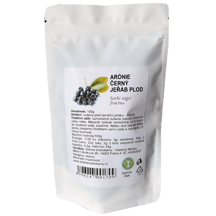 Složení: 100g sušeného plodu arónie - černého jeřábu