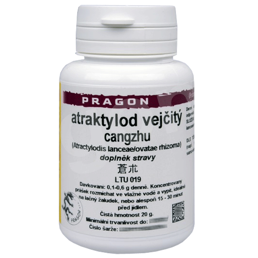 Denní dávka 0,6g rozpustného prášku odpovídá 3g sušené byliny atraktylod vejčitý (Atractylodis lanceae/ovatae)