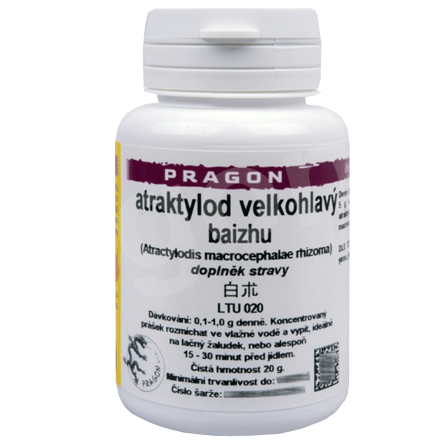Denní dávka 1g rozpustného prášku odpovídá 5g sušené byliny atraktylod velkohlavý (Atractylodis macrocephalae rhizoma)