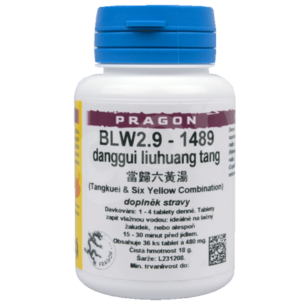 BLW2.9 - danggui liuhuang tang 36 á 480mg tablet ve složení: kozinec, děhel, rehmánie, šišák, korkovník, niťolist. Koncentrace 5 : 1. 1 tableta odpovídá cca 2,4 g sušených bylinek, 1 balení odpovídá cca 86 g sušených bylinek.