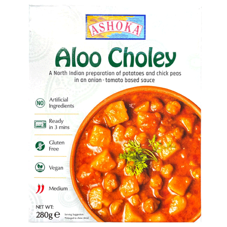 Brambory s velkou cizrnou vařené v omáčce z mnoha indických léčivých bylin. Nejlépe chutnají s veganským jogurtem. Vhodné pro celiaky i vegany. Hotové jídlo bezlepkové, bez laktózy, bez přídatných látek, bez přidaného cukru, bez umělých aromat. Lahodná pochoutka, je běžné severoindické jídlo vysoce uznávané jako příloha k chapattis a puris.