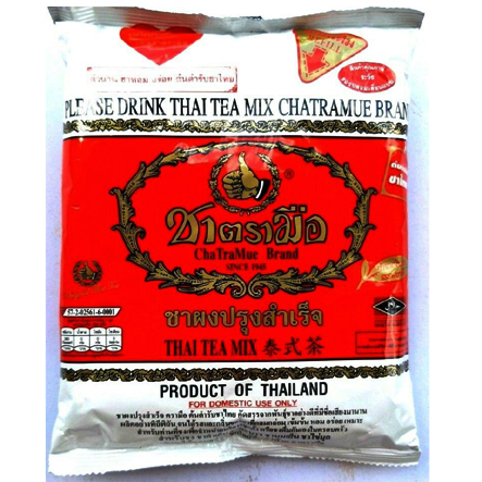Černý thajský čaj od Cha Tra Mue - 400g. Originální černý čaj Thai Cha Tra Mue se vyrábí z nejkvalitnějšího čaje pěstovaného v této zemi. Dodatečné aroma obsažené v čaji, včetně vanilky, navíc obohacuje jeho chuť.
