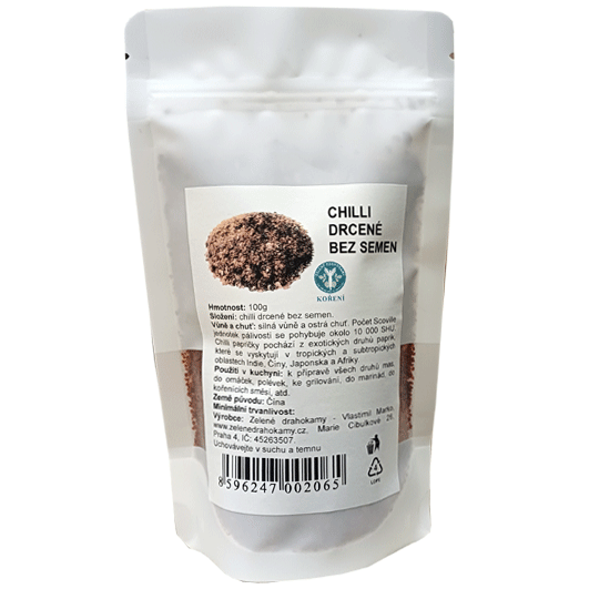 Bezpečnostní opatření: Uchovávejte v suchu a temnu. Při konzumaci chilli si dejte pozor na podráždění kůže a očí. Opatrně při trávicích potížích, zejména při refluxu nebo vředech.