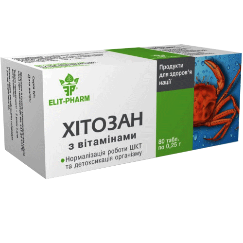 Složení 15 tablet: chitosan (výrobek z korýšů) 3 g, plnidla: škrob, laktóza (výrobek z mléka), protispékavá látka: stearát vápenatý, vitamín E (DL-alfa-tokoferyl-acetát) 15 mg (tj. 125 % RHP*), vitamín A (retinyl-palmitát) 1 245 µg (155 % RHP), vitamín D3 (cholekalciferol) 4,95 µg (198 % RHP).