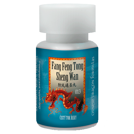 FANG FENG TONG SHENG WAN - 200 kuliček/33g. Složení bylinných tablet: Zlatice převislá, Ledebouriela rozkladitá, Šišák bajkalský, Platykodon velkokvětý, Schizonepeta tenkolistá, Pivoňka bělokvětá, Děhel čínský, Atraktylis velkoúborná, Koprníček wallichův, Zázvor obecný, Koptis čínská, Máta jednokališná, Lékořice uralská,