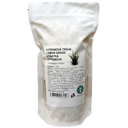 100g balení Citrónové trávy přidáváme dle chuti do pokrmů či čajů. Celá rostlina má charakteristickou, velice intenzivní citronovou vůni. Citronela je hojně využívána v kuchyni jako koření, namísto citronové šťávy nebo jako součást čaje.