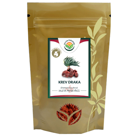 Sušená pryskyřičná míza z plodů palmy Daemonorops draco. Krev draka se využívá hlavně jako zásyp na drobná poranění, přičemž je po zásypu zastaveno krvácení a urychluje se proces hojení. "Dračí krev" se často přidává i do mastí pro svoje antibiotické a protizánětlivé vlastnosti. Doporučována je i v případech špatně se hojících vředů a hemoroidů.