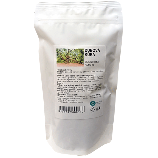 Složení: Sušená kůra dubu letního - Quercus robur cortex řezaná.