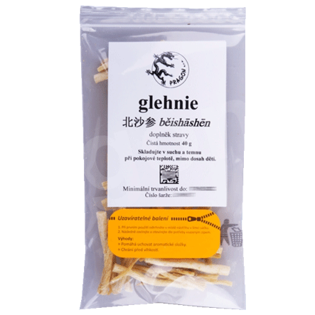Balení obsahuje 40 g kořene glehnie, beishashenu, Glehniae radix.