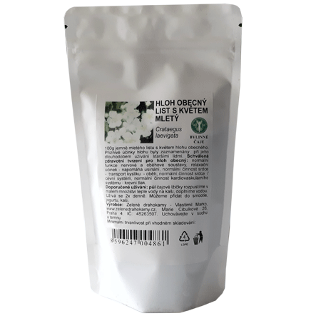 Mletý list s květem hlohu obecného. Hloh přispívá normálním funkcím nervové a oběhové soustavy, má relaxační účinek - napomáhá usínání, normální činnost srdce - transport kyslíku - oběh, normální činnost kardiovaskulárního systému - krevní tlak.