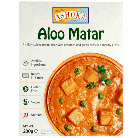 Aloo Matar je vynikající středně pálivé jídlo z Pandžábu v severní Indii. Snoubená chuť čerstvého zeleného hrášku v husté omáčce s bramborami je vynikajícím hlavním chodem podávaným s horkou rýží, chlebem naan nebo chapatis.