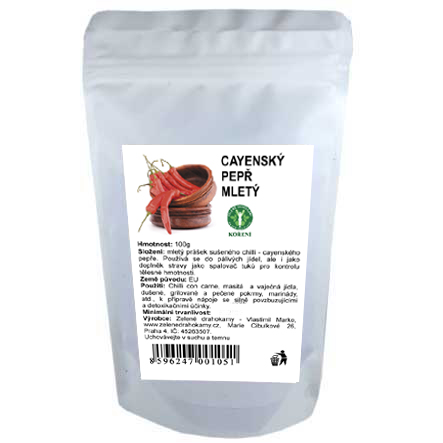 Použití: Kajenský pepř je středně pálivé chilli, které se nejčastěji přidává do omáček (např. guláše), do horkých polévek, ale i nápojů. Velice oblíbený je při nakládání utopenců, hermelínů a jiných sýrů, také při přípravě masitých pokrmů.