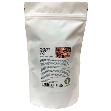 Kalichy Karkadé - ibišku súdánského neřezané. Čaj z ibišku je vínově červené barvy, kyselé chuti. Vhodný do čajových směsí, kterým dává příjemnou kyselou chuť a barvu, ale i jako samotný čaj. 100g balení