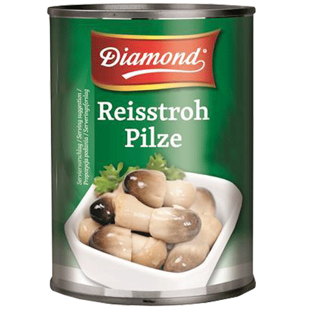 Konzervované čínské slámové houby - Volvariella volvacea. Houby, pěstované na rýžové slámě. Tyto houby jsou hodně používané v jihovýchodní asijské kuchyni, zejména thajské, čínské, vietnamské.