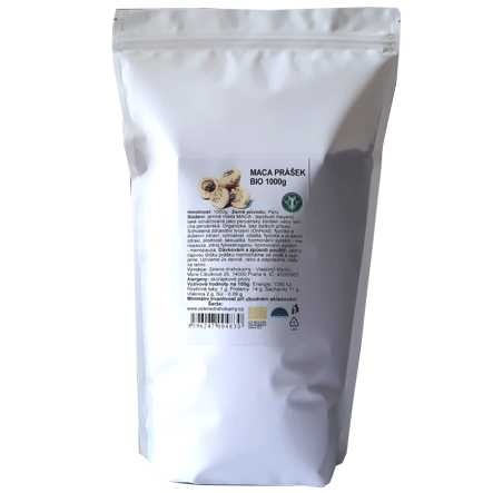 Maca, označovaný jako peruánský ženšen, je silný posilující a revitalizující prostředek, přinášející výdrž a vitalitu, podporující plodnost! 400g, bylinné čaje. Připravuje se rozmícháním ve vodě nebo přidáním do jogurtů, snídaňových směsí, tvarohů, atd. CZ-BIO-004