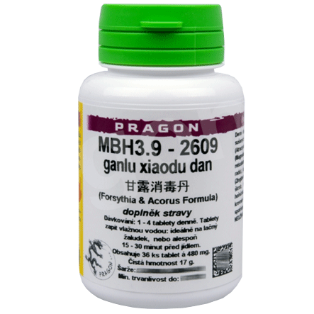 Vyrobeno podle receptury ganlu xiaodu dan. Bylinné složení: pelyněk, šišák, puškvorec, řepčík, akébie, zlatice, agastach, anginovník, máta, kardamom. Balení obsahuje 36 ks tablet á 480 mg.