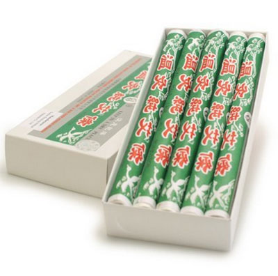 Balení obsahuje velmi kvalitní pelyňkové moxy Hunan, 10x válec doutníkového typu (moxovací doutníky) 1,5 x 21 cm.