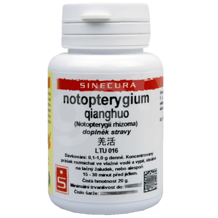 Notopterygium Qianghuo instantní prášek 20 g, Koncentrace 5 : 1, 1 g prášku odpovídá cca 5 g sušených bylinek, 1 balení odpovídá cca 100 g sušených bylinek. Bylinný doplněk stravy.