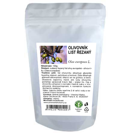 List olivovníku - olivy evropské (Olea europaea) . Olivový list pomáhá upravovat krevní tlak - snižuje ho, čaj z olivovníku přispívá k normální hladině cukru v krvi, přirozené obranyschopnosti, k normálním funkcím dýchacího systému.