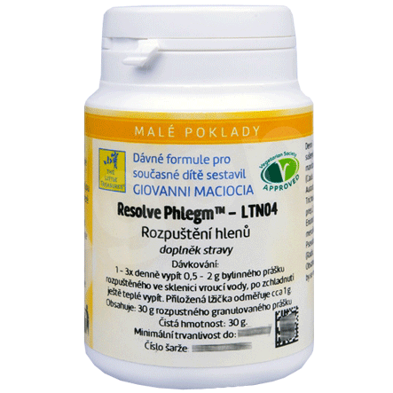 Balení obsahuje 30 g rozpustného granulovaného prášku, kde 1g granulovaného prášku odpovídá 6 g zdrojových bylin. Koncentrace 6 : 1. MALÉ POKLADY (The Little Treasures) je produktová řada sestavená prof. Giovannim Maciociou a zohledňující jeho téměř 40 let klinických zkušeností.