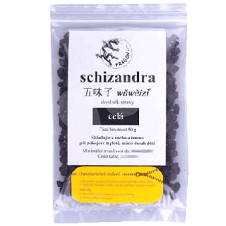 Také se jim říká plody čistoty. Schizandra patří v TČM mezi nejcennější byliny. Adaptogen, stimulant, detoxikant, je využíván proti únavě, při sportu, při vyčerpání, pro zlepšení fyzického i psychického výkonu. Neobsahuje přitom kofein.