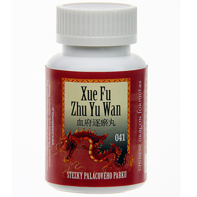 XUE FU ZHU YU WAN - Bylinné složení: Broskvoň obecná, Děhel čínský, Světlice barvířská, Cyantula lékařská, Rehmanie lepkavá, Pivoňka bělokvětá, Bigarádie, Koprníček wallichův, Platykodon velkokvětý, Prorostlík čínský, Lékořice uralská