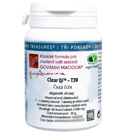 T39 - Čistá čchi (Clear Qi) (tablety). Bylinná směs z řady Tří podkladů (The Three Treasures) sestavená Giovannim Maciociou ve formě tablet. V balení 60 tablet á 500 mg, dávkování 1-2 tablety denně. Charakteristika účinků dle čínské dietetiky: stáhnutí čchi plic, zastavení sípán