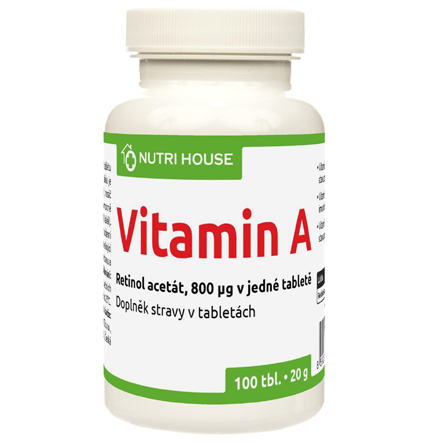 Doporučuje se užívat 1 tabletu denně. Maximální denní povolená dávka je 1 tableta. Složení: Retinol acetát, nosič (mikrokrystalická celulóza), pomocné tabletovací látky (stearan hořečnatý, talek).