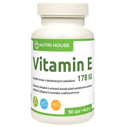 Vitamín E 100 mg v tobolkách. Doporučuje se užívat 1 tobolku denně. Vitamin E přispívá k ochraně buněk před oxidativním stresem.
