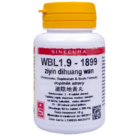 zi yin di huang wan 60 tablet. Obsažené byliny: rehmánie, prorostlík, šišák, děhel, chřest, kustovnice, magnolka, niťolist, žen-šen, lékořice, citroníkBalení obsahuje 60 ks tablet á 300 mg. Každá tableta Sinecura odpovídá cca 1,5 g směsi zdrojových (sušených) bylinek. Koncentrace 5 : 1.