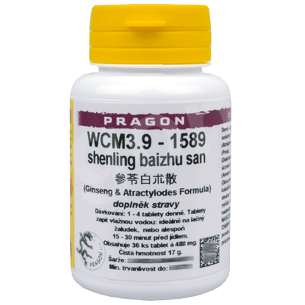 Další používané názvy: shen-ling baizhu san, shenling baizhu pian, shenling baizhu wan, WCM3.9-1589. Bylinná směs klasického složení ve formě tablet. V balení 36 tablet á 480 mg. Bylinný doplněk stravy