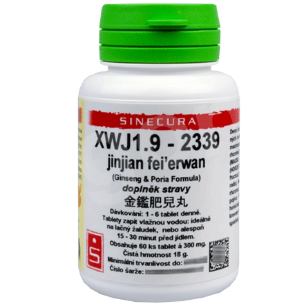 Bylinná směs jijianfei er wan v bylinném složení: atraktylod, pikrorhiza, kviskvalie, kvásek, ječmen, hloh, pórnatka, všehoj, aloe, koptis, lékořice. Denní dávka 6 tablet odpovídá 7,6g směsi sušených bylin.