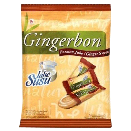Ingredience: Glukóza 49,8%, cukr 40,71%, sušené mléko 7,65%, rostlinný tuk 1,59%, zázvorový extrakt 0,36%, zázvorové aroma 0,28%, sůl 0,17%