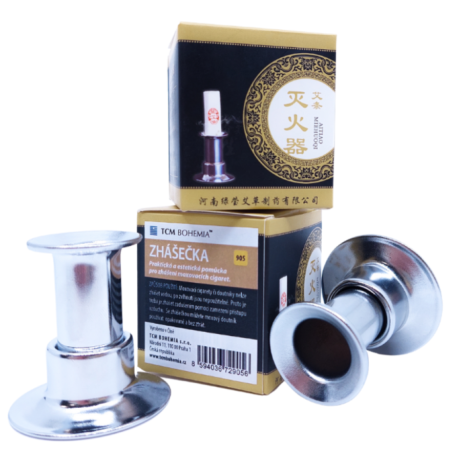Praktická a estetická pomůcka pro zhášení moxovacích doutníků. Moxovací cigarety či doutníky nelze zhášet vodou, po zvlhnutí jsou nepoužitelné, proto je třeba je zhášet zadušením pomocí zamezení přístupu vzduchu. Se zhášečkou můžete moxový doutník používat opakovaně a bez ztrát.