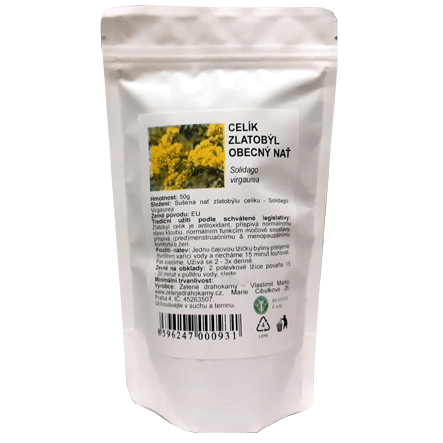 Sušená nať zlatobýlu celíku - Solidago Virgaurea 50g. Zlatobýl celík je antioxidant, přispívá normálnímu stavu kloubů, normálním funkcím močové soustavy, přispívá (před)menstruačnímu & menopauzálnímu komfortu u žen.